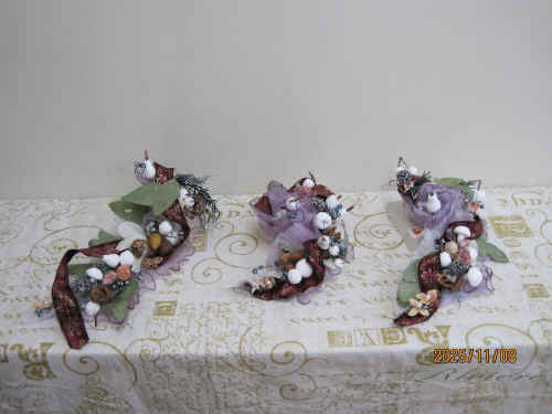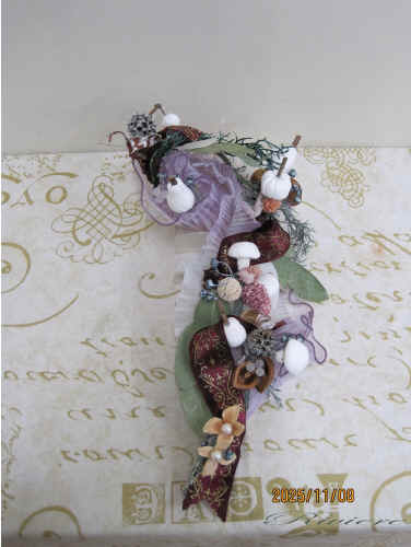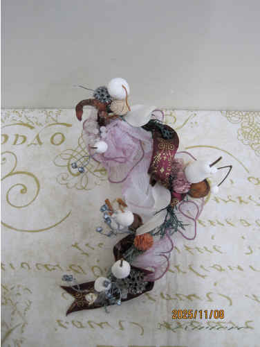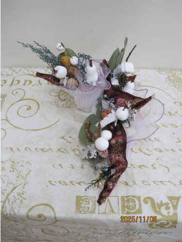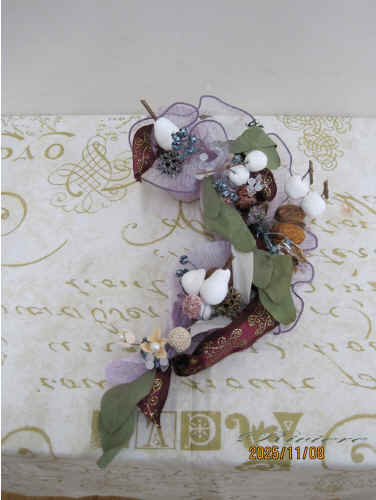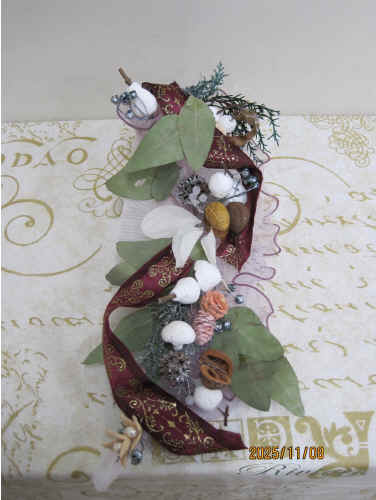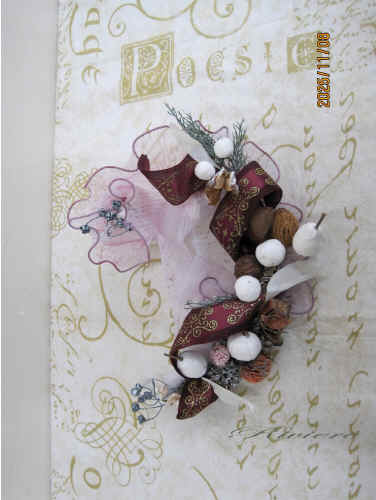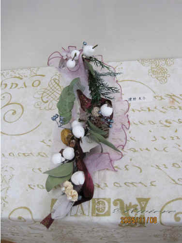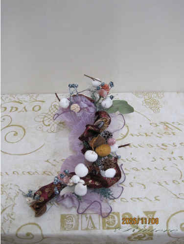 クリスマスプディングのように 12月24日クリスマス当日にクリスマスプディングに柊を添えてクリスマスを祝うイギリスの伝統的な習慣。カウントダウンを待つ喜びが、ちょっとした工夫で盛り上がります。今回はこのクリスマスプディングに倣ってまず11月はベースとなるフルーツのガーランド(デロロビアガーランド)を作りました。これから1ケ月をかけてドライを固定していきます。ワイヤーが入っているので、ドーム型に形作ったり三日月型にしたり 好みの形にカーブさせる事もできます。12月24日にはきっとご自分の温めてきたスタイルで、ガーランドを完成させることと思います。楽しみです。 |