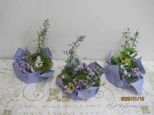 幸せのルノワールリース 教室のサンプルとして今年初めてのアレンジをご紹介しました。ルノワールの穏やかな色彩あたたかな空気感をどのように表現するのかを直接皆様に見ていただく事にしました。サンプルがあったのでとても分かりやすかったようです。 |