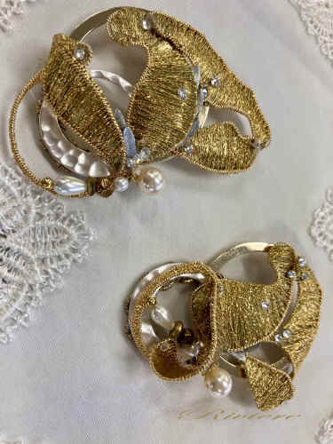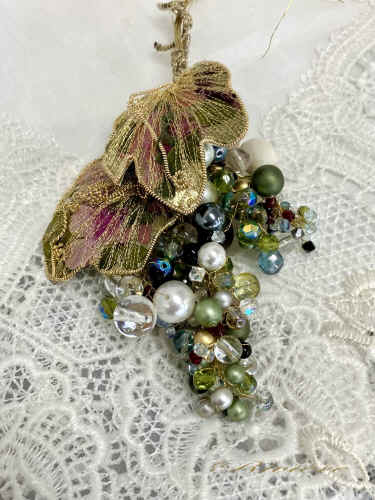 小さなブドウを組み合わせて大きなブドウに変身しました。 モダンアクセサリー ゴールドの輝きはシェーネェーアルバイテンの醍醐味。リングオーナメントと組み合わせてオリジナルな作品にまとめてみました。美しいひねり は初心者とは思えない出来栄えです