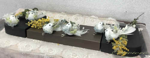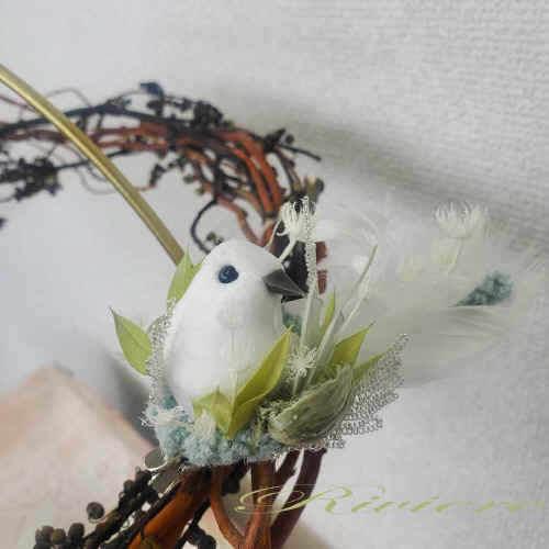スプリングバードをドライで作る スプリングバード お二人それぞれ個性のある鳥になりました。同じドライフラワーでもこんなにも表情豊かになります。3人目の鳥もこれから写真送られて来るかと思います。 |